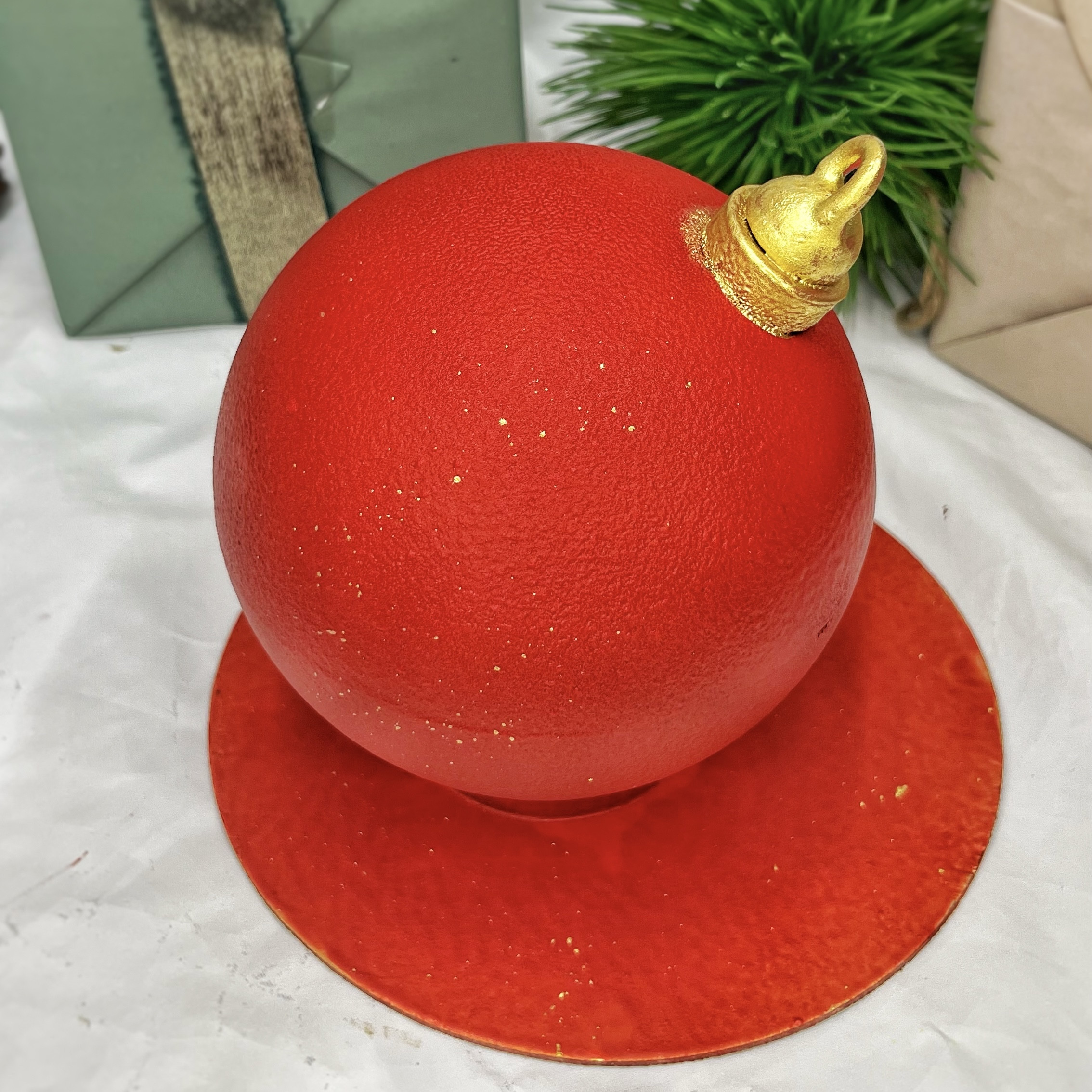 Коледна шоколадова топка за разчупване, изцяло от фин шоколад със скрити вътре шоколадови фигурки, мармелоу и цветни бонбони.
